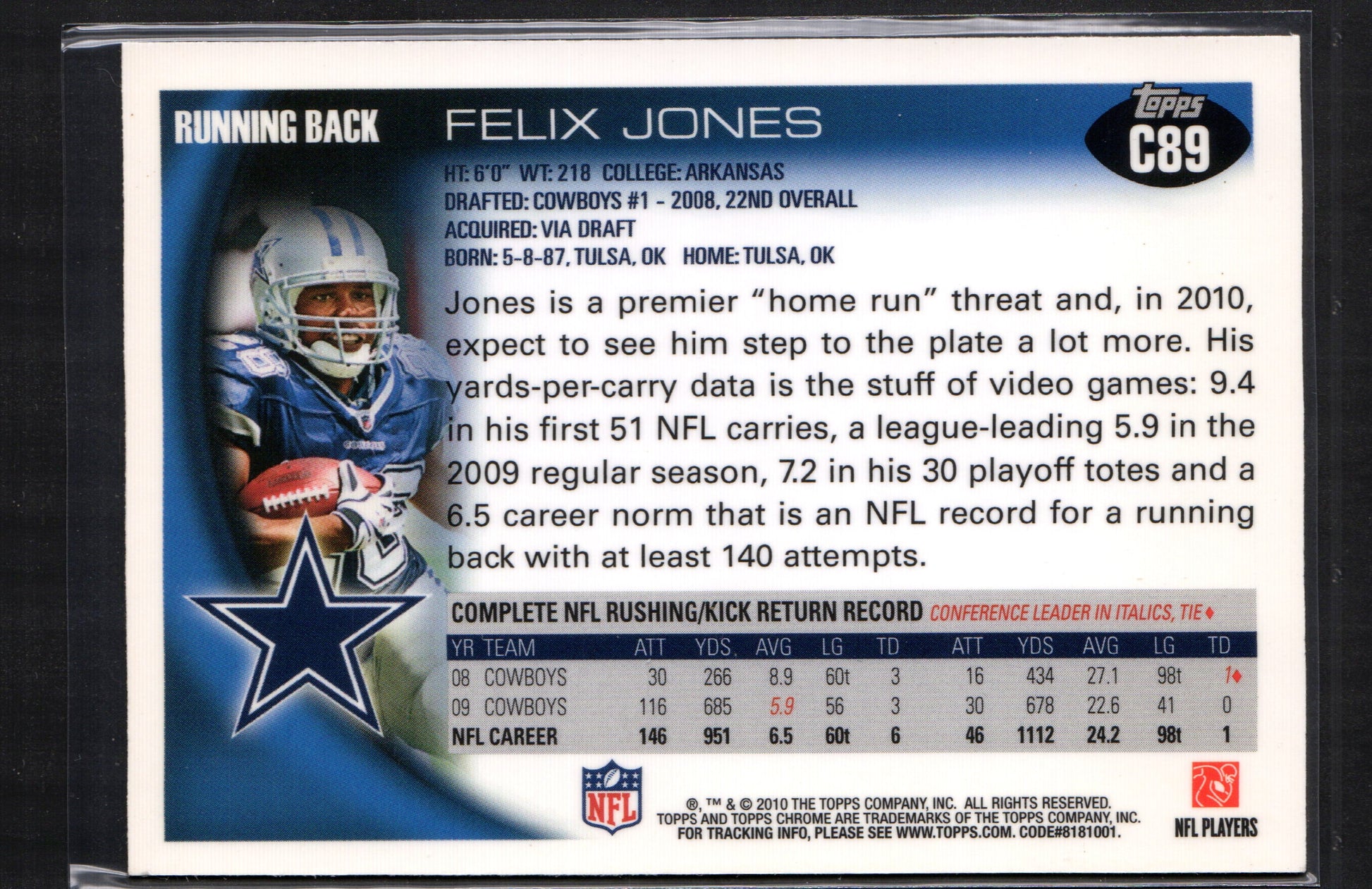 Felix Jones Dallas Cowboys #C89 - 2010 Topps Chrome