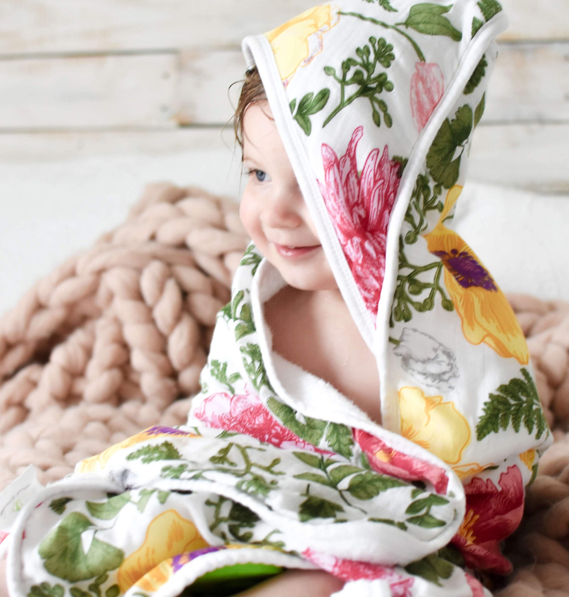 Baby Hooded Towel, Muslin-Backed, Buttery Soft Terry, Floral Print