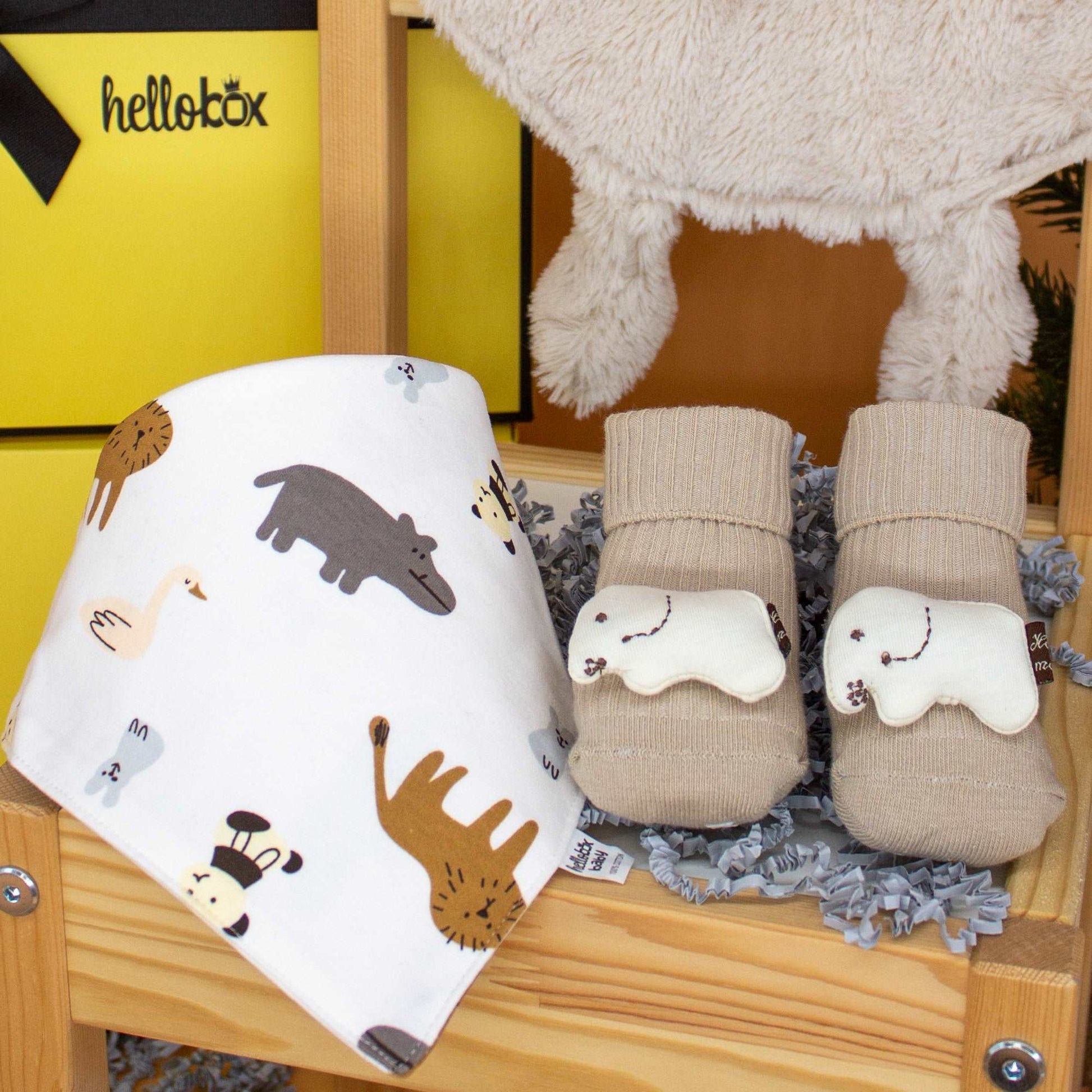 Hellobox Schmusetuch, Anti-Rutsch Erstlingssöckchen und Lätzchen Baby