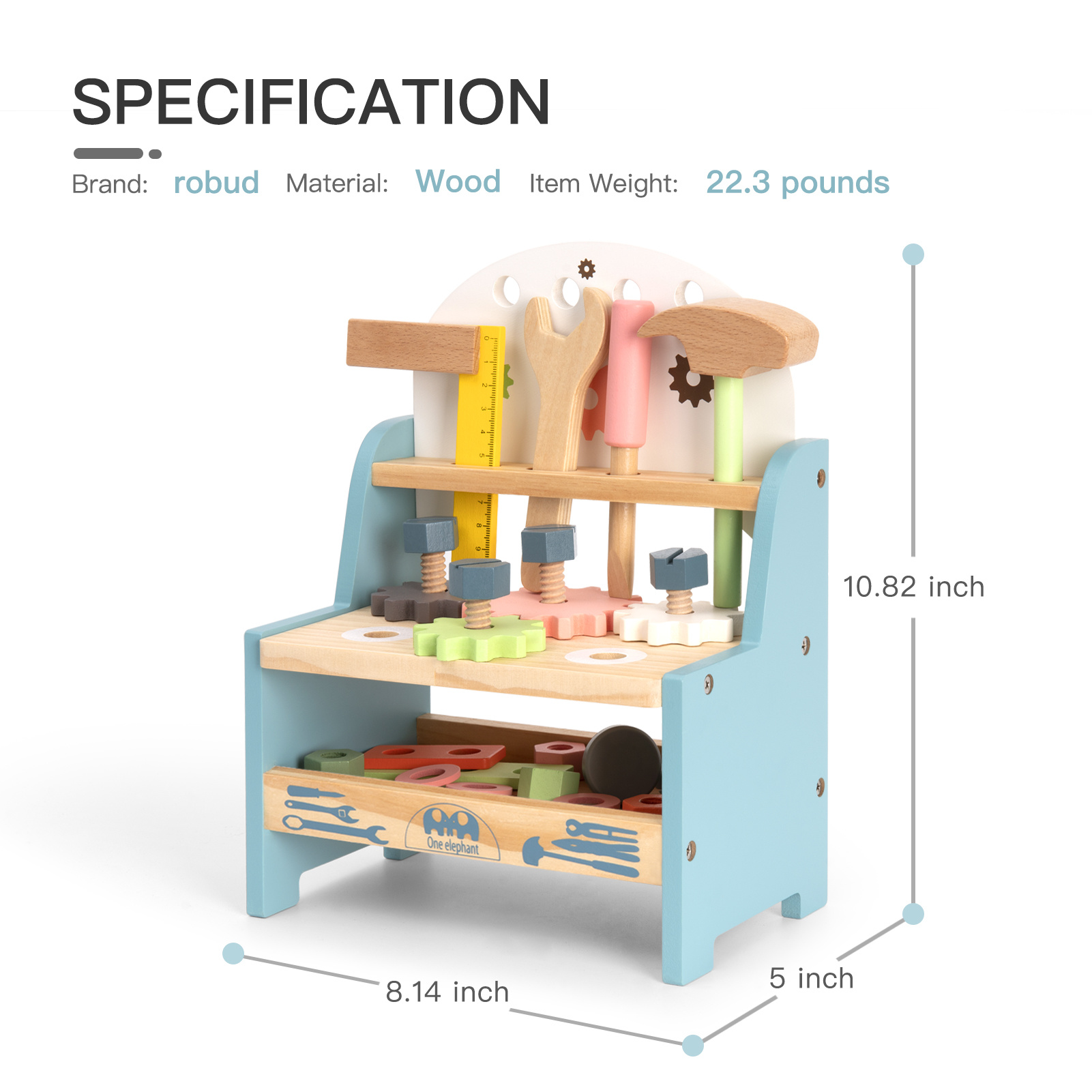Mini Wooden Play Tool Workbench Set for Kids Toddlers