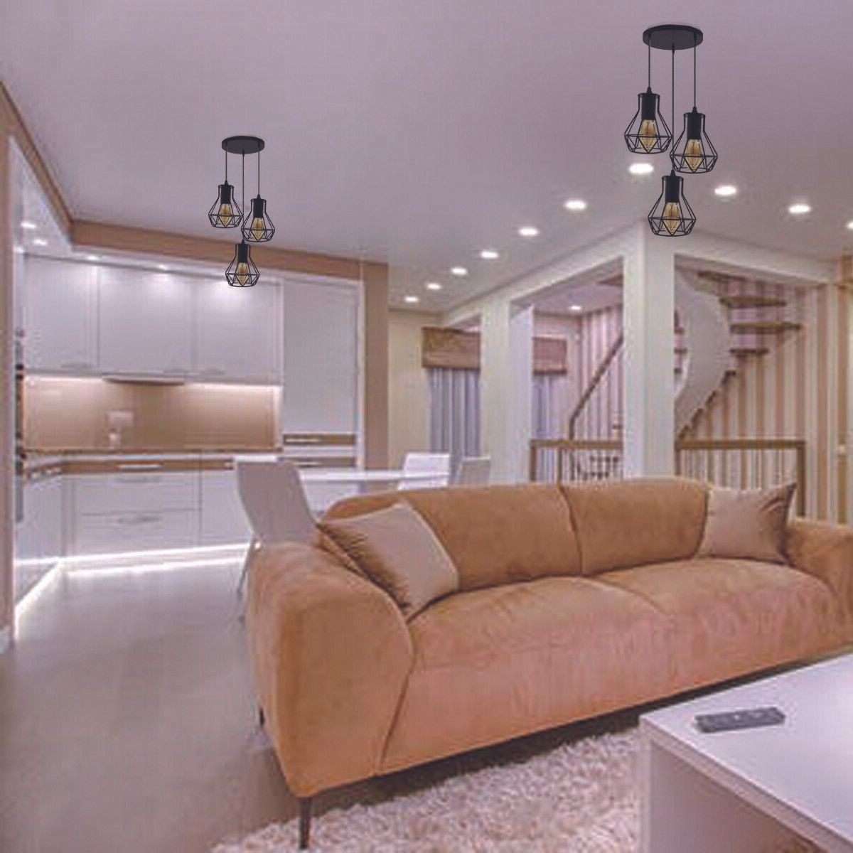 Modern Ceiling 3 Head Pendant Light Fitting Metal Black Cage~2471