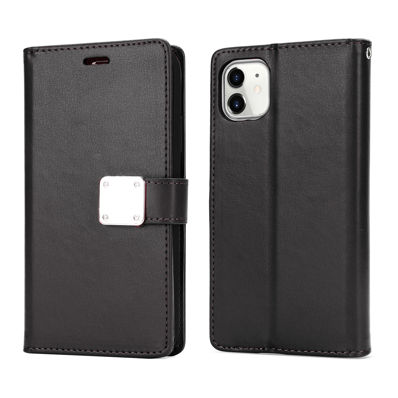Multi Pockets Folio Flip Leather Wallet Case with Strap for iPhone 12