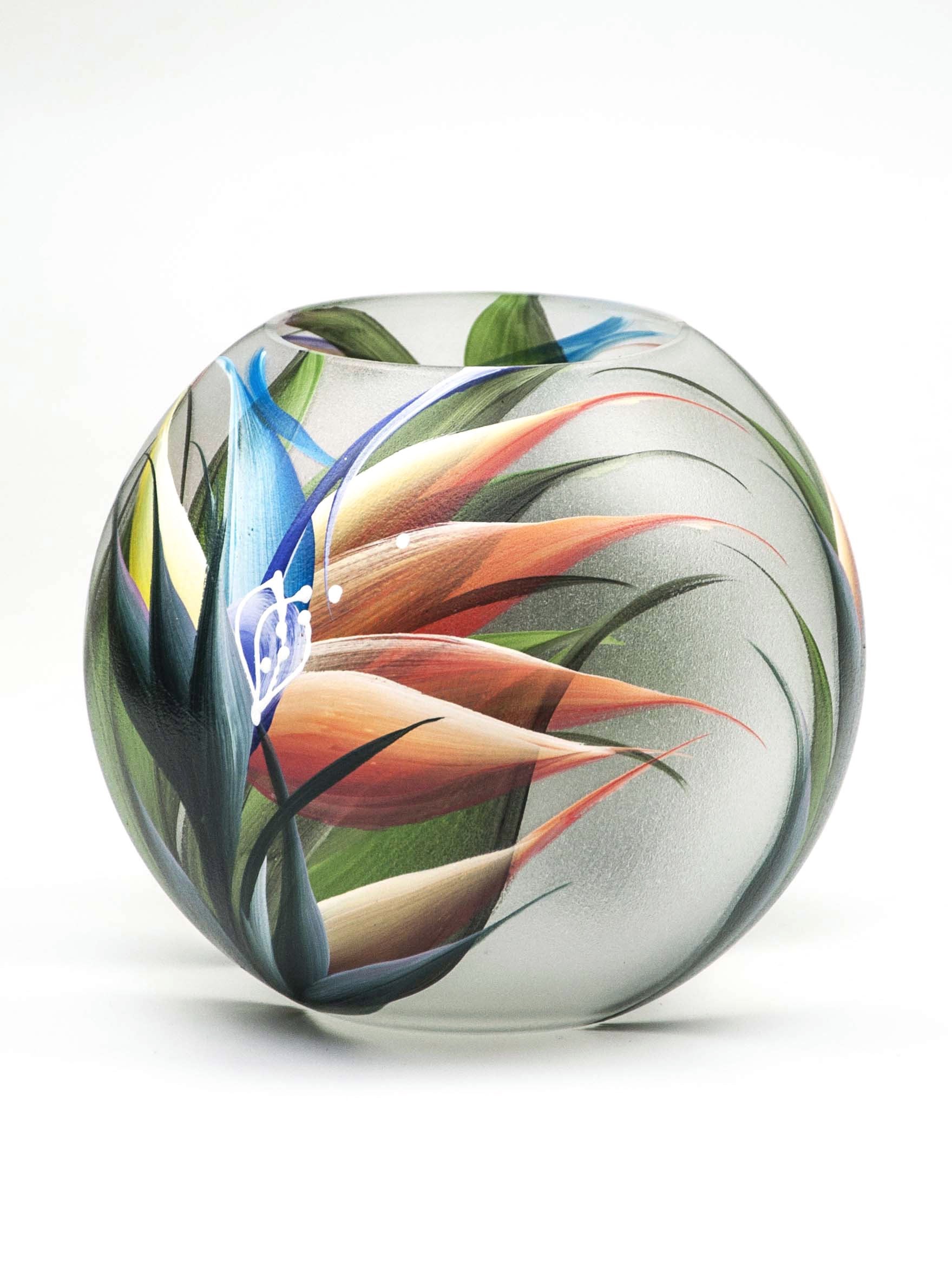 Handpainted Glass Vase for Flowers | Painted Art Glass Oval Vase |