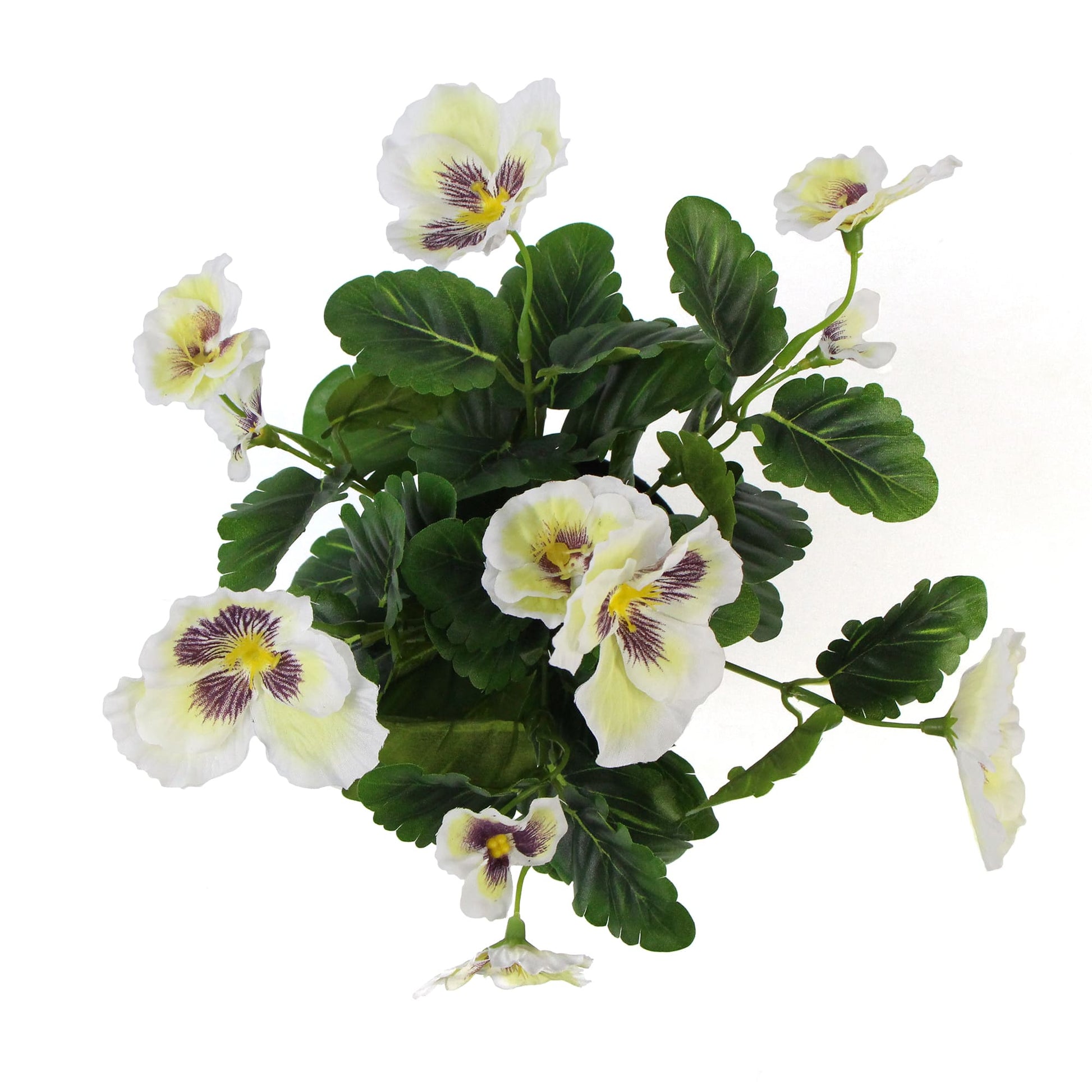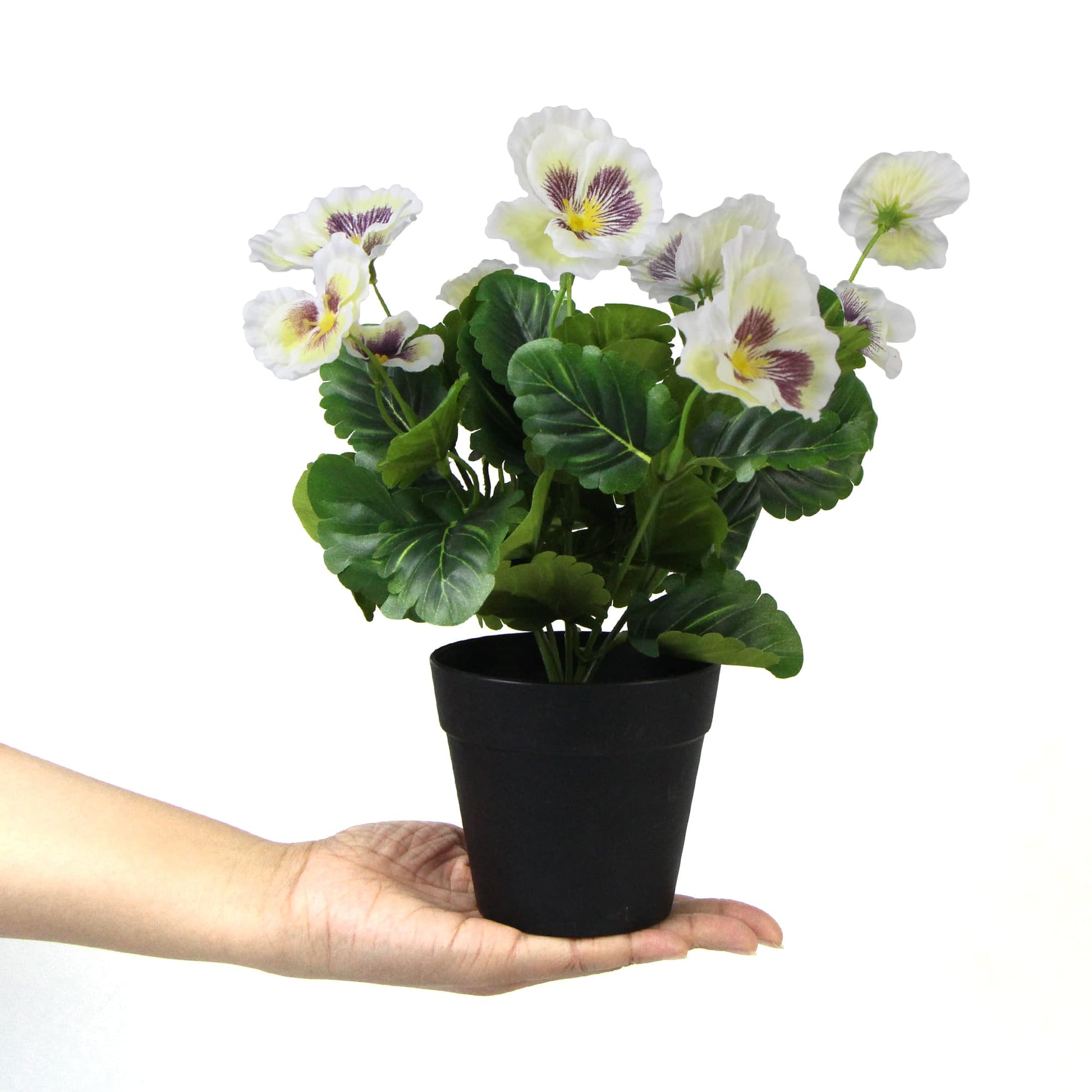 Mixed White Flowering Potted Artificial Pansy Plants 25cm