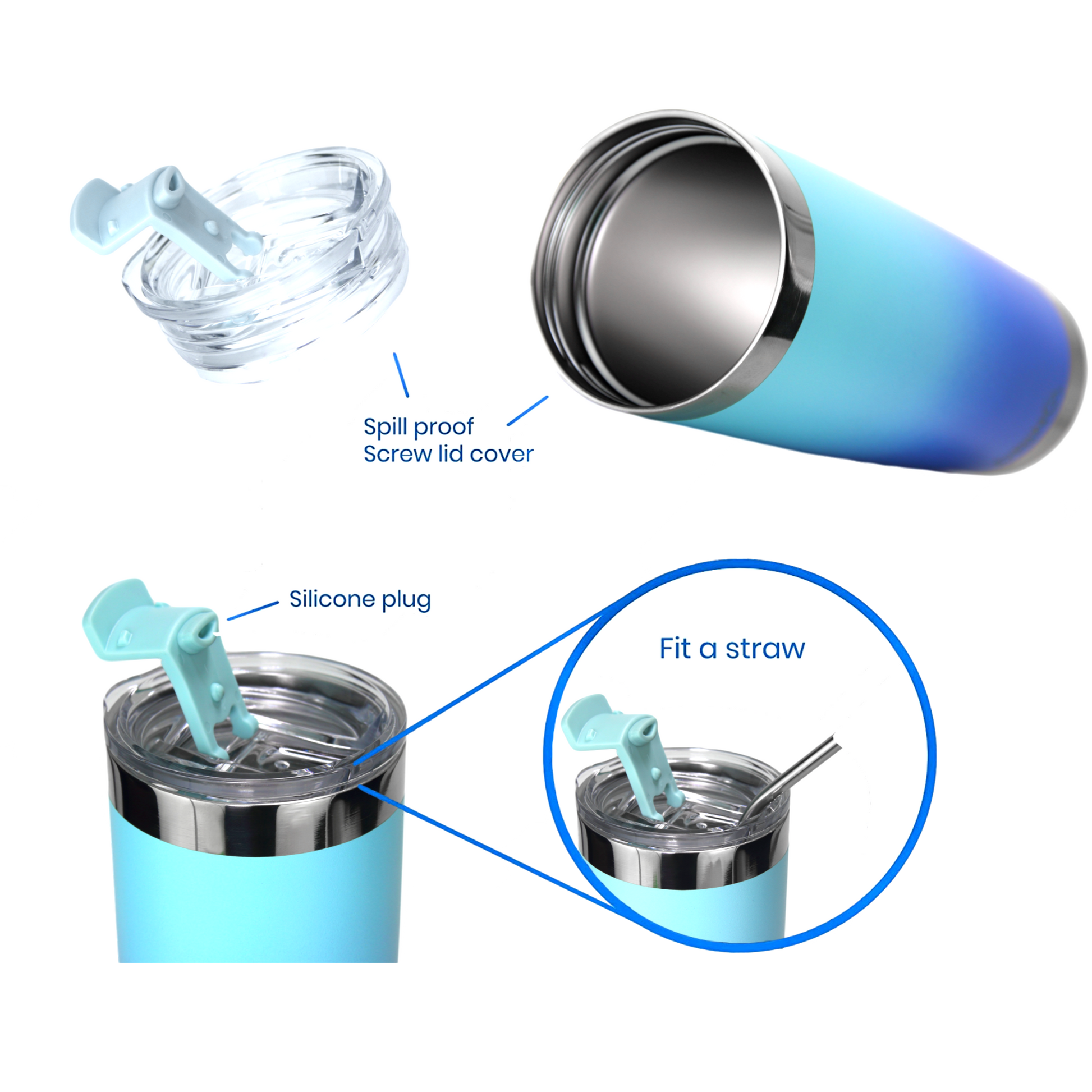 DRINCO® 20oz Insulated Tumbler Spill Proof Lid 2 Straws(SkyBlue)