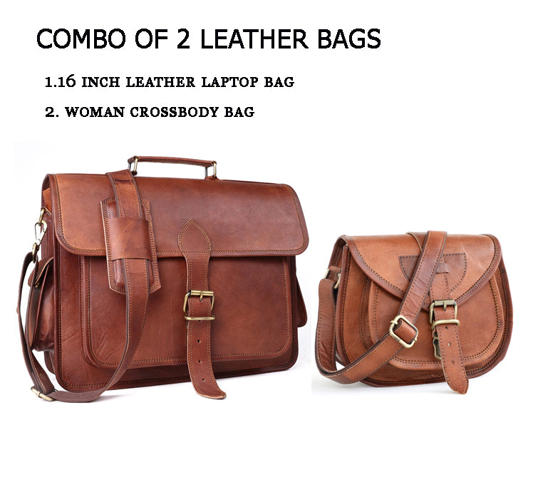 Combo Of 2, Leather Laptop Bag with Small Woman Crossbody Purse