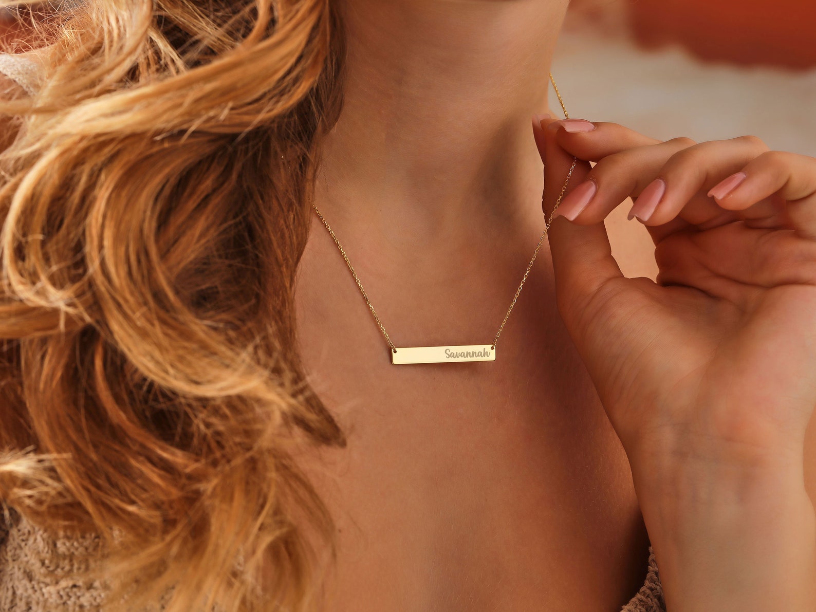 Personalized Necklace Engraved Bar Necklace Gold Bar Name Necklace