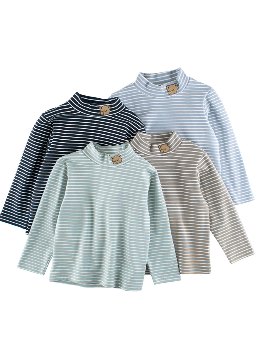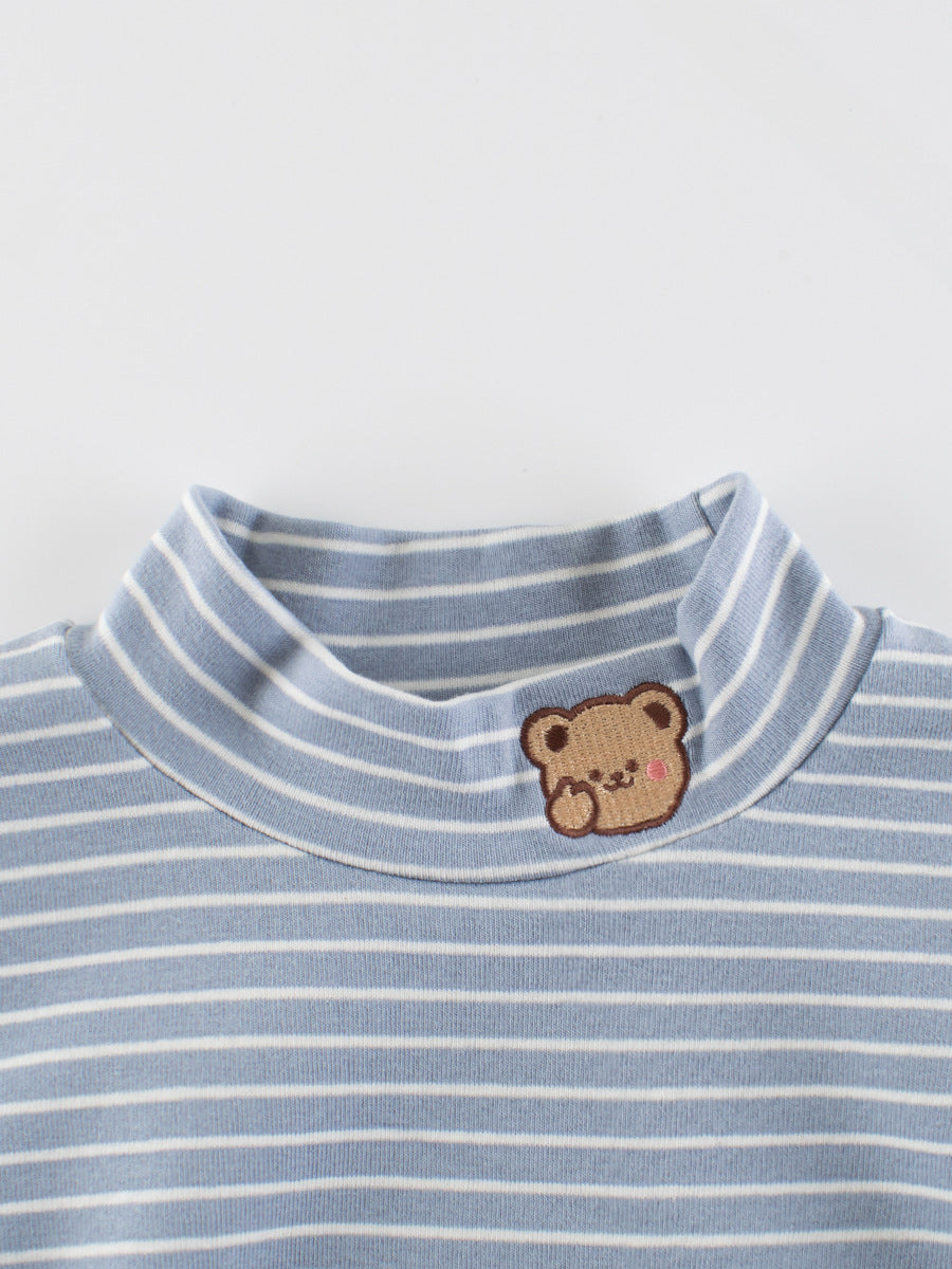 Autumn Baby Kids Boys Teddy Embroidery Pattern Striped Long Sleeves