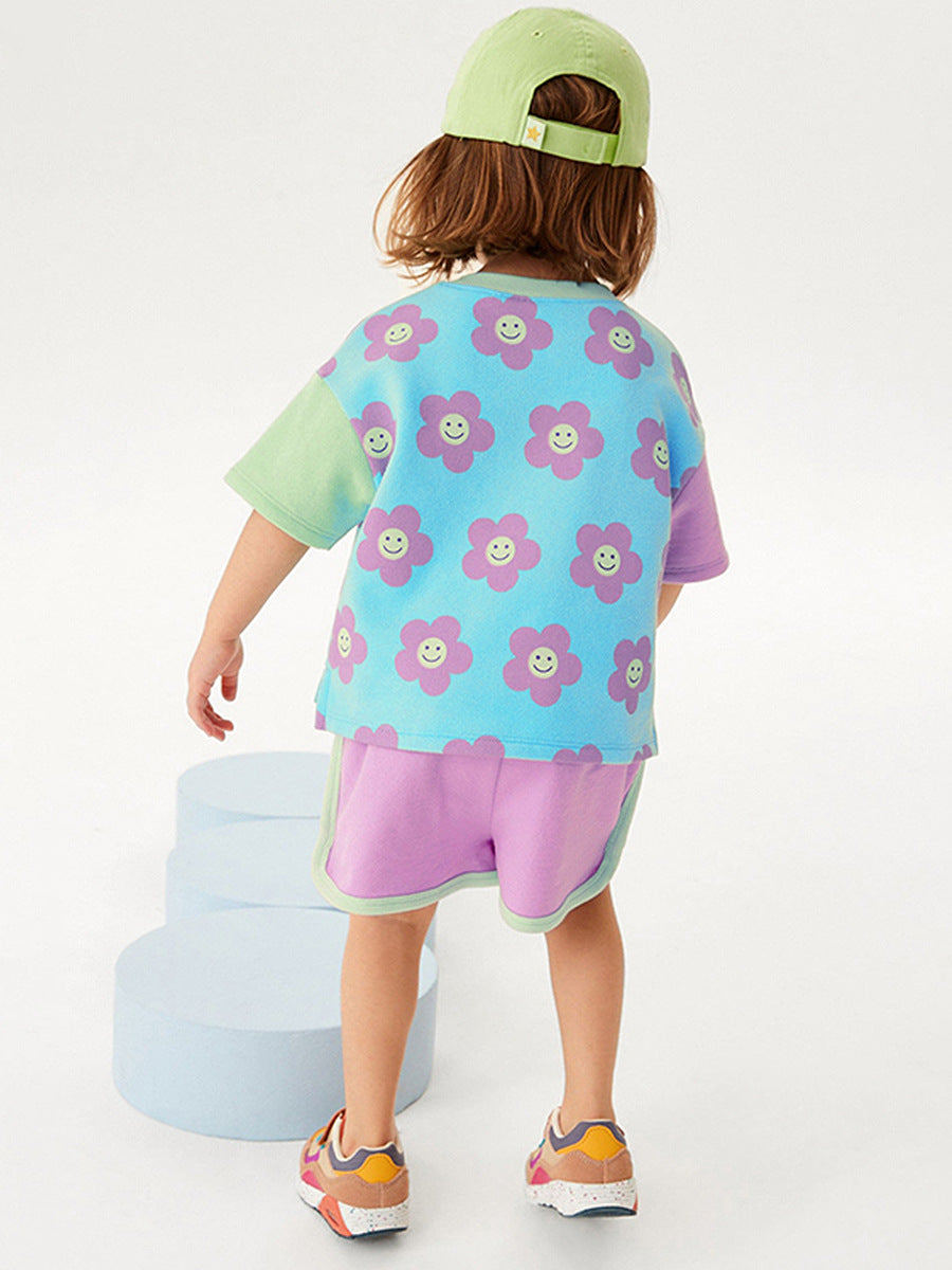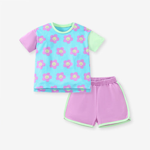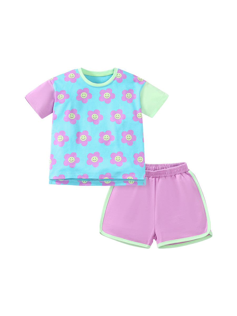 Baby And Kids Girls Floral Cartoon Top And Shorts Casual Home Clothing