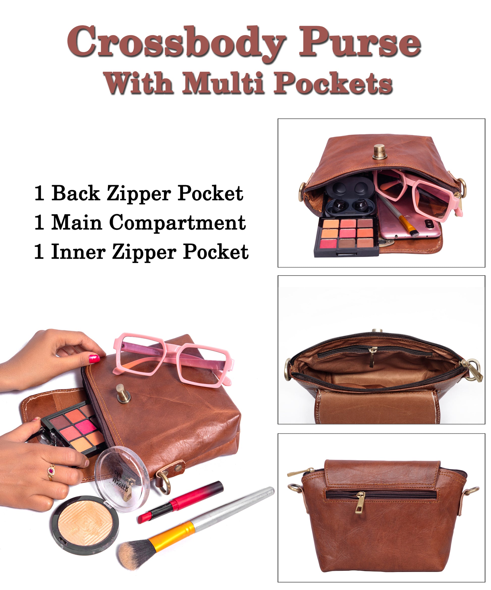 Genuine Leather Small Cross body Purse for Women, Small Saddle Handbag