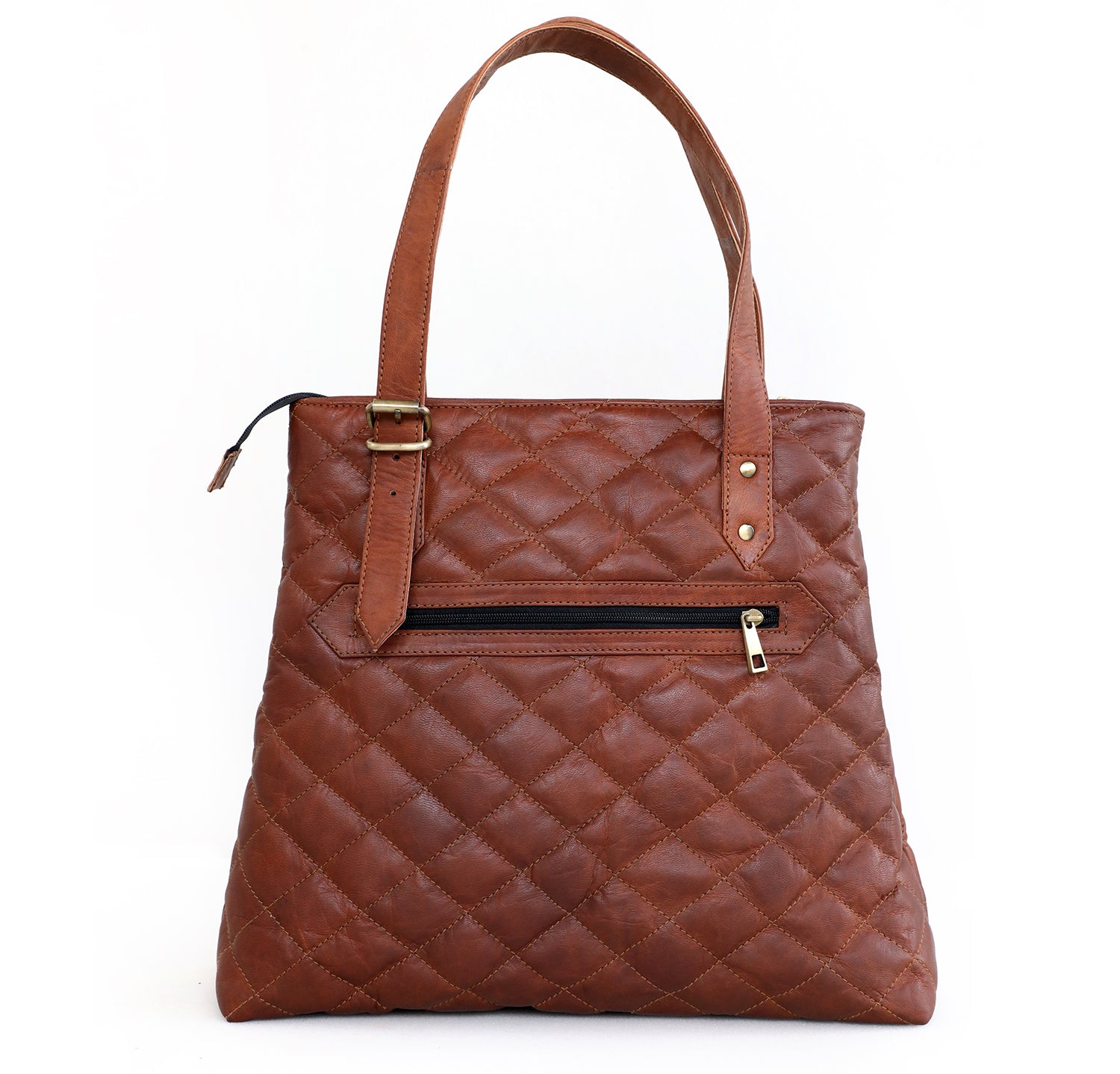 Genuine Goat Leather Vintage Brown Large Tote Shoulder Bag with Zipper