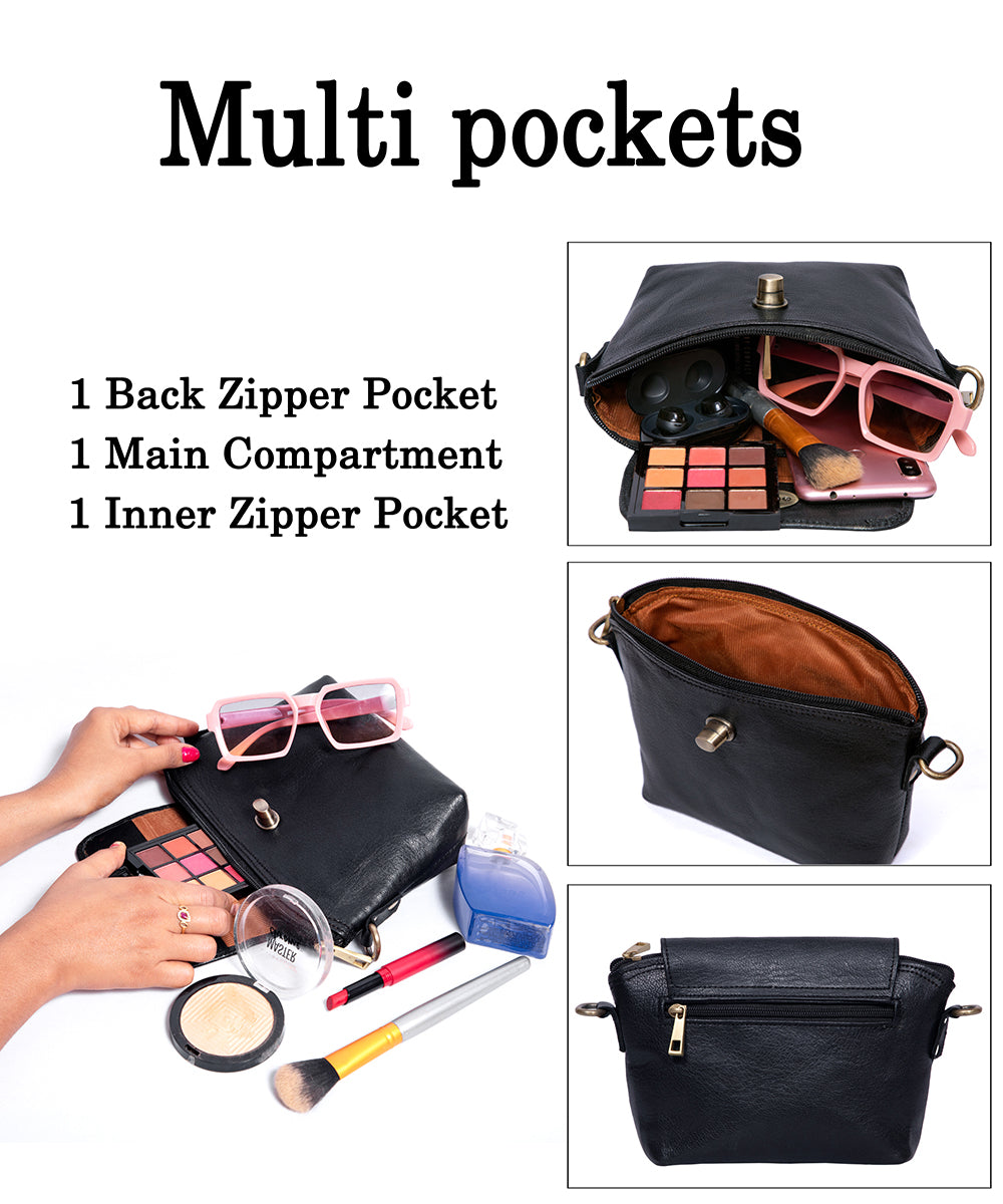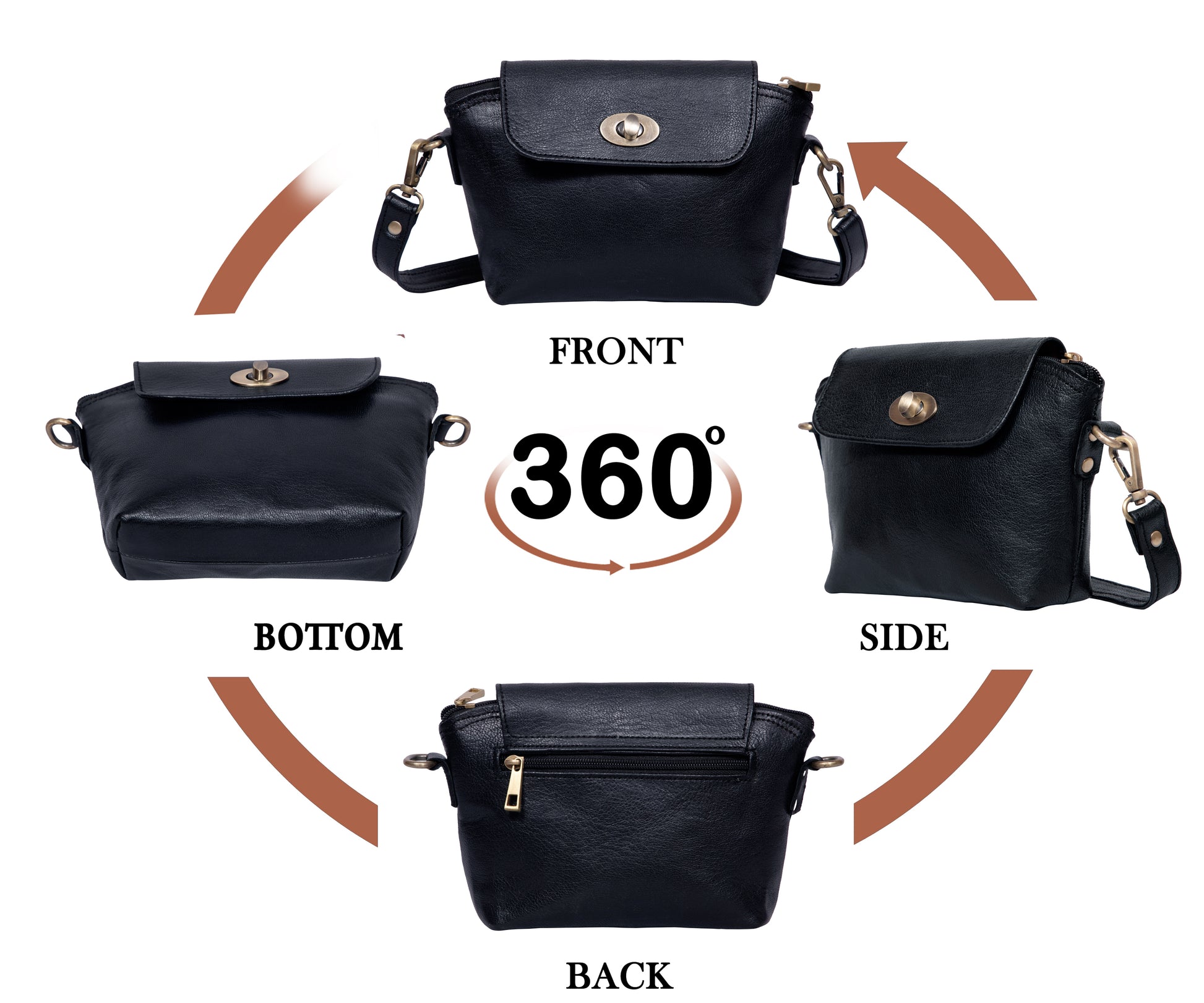 Real Black Leather Handmade Womens Cute Side Crossbody Purse