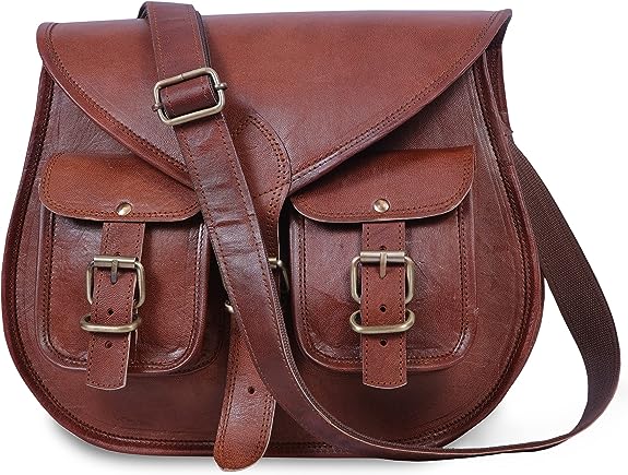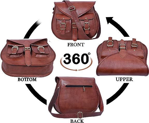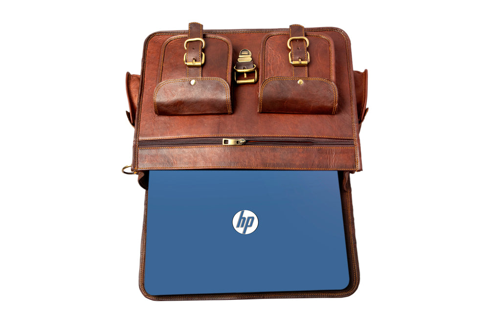 Anuent Handmade Brown Leather Laptop Bag With 2 Pockets.