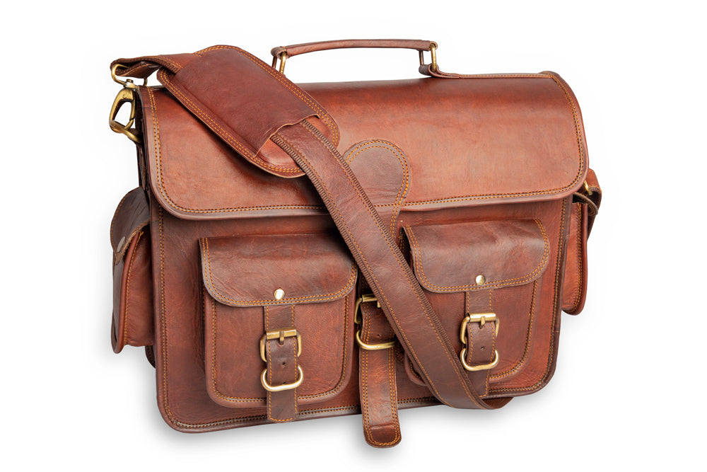Buffalo Leather Laptop Messenger Bag With 2 Pockets.