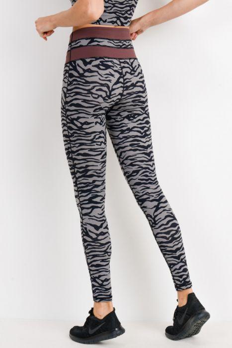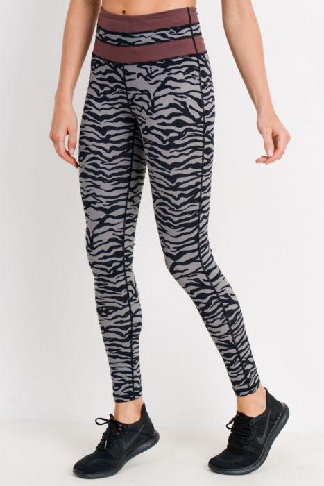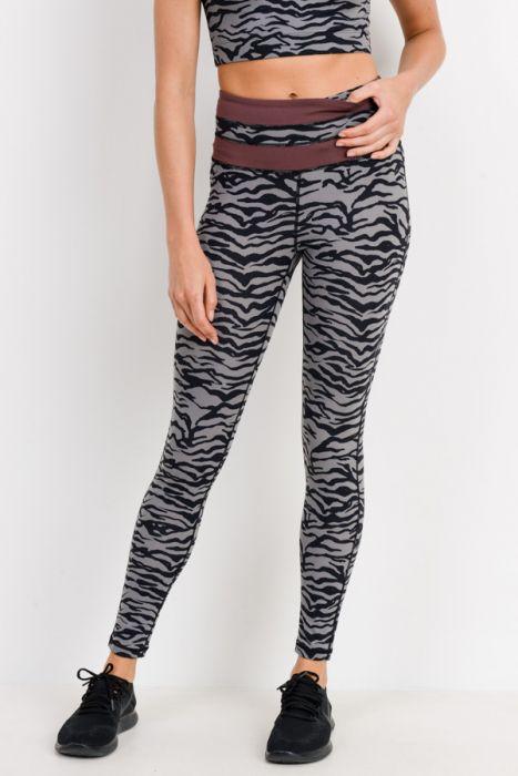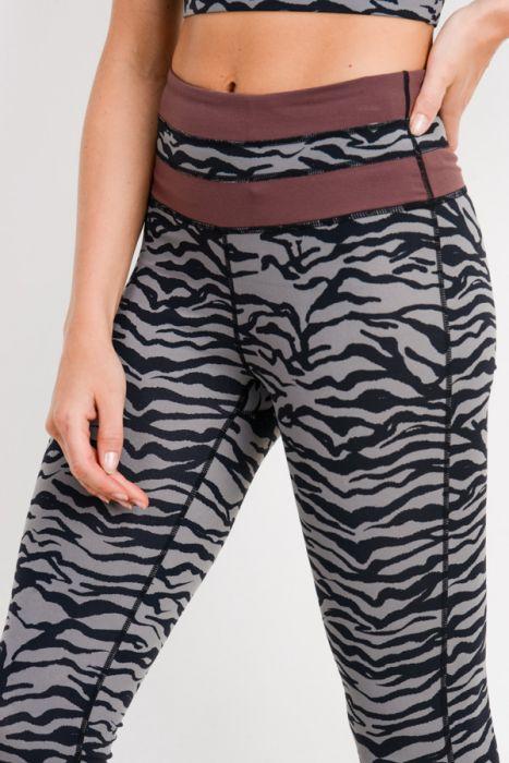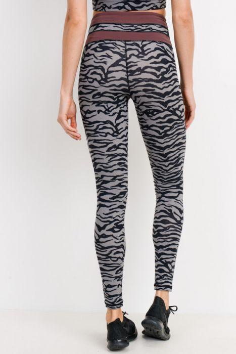 Grey Tiger Print Highwaist Leggings with Striped Band