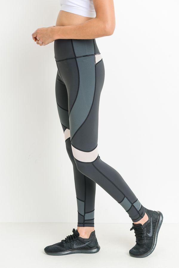 Highwaist Heather Grey Stripes & Colorblock Full Leggings