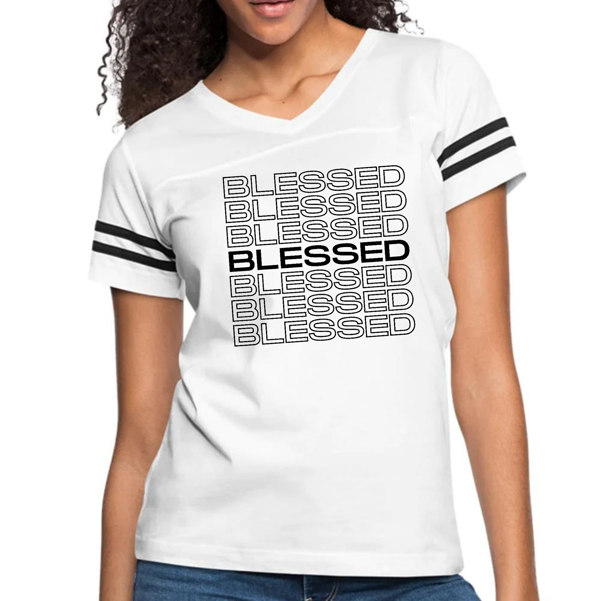Womens Vintage Sport Graphic T-shirt, Stacked Blessed Print