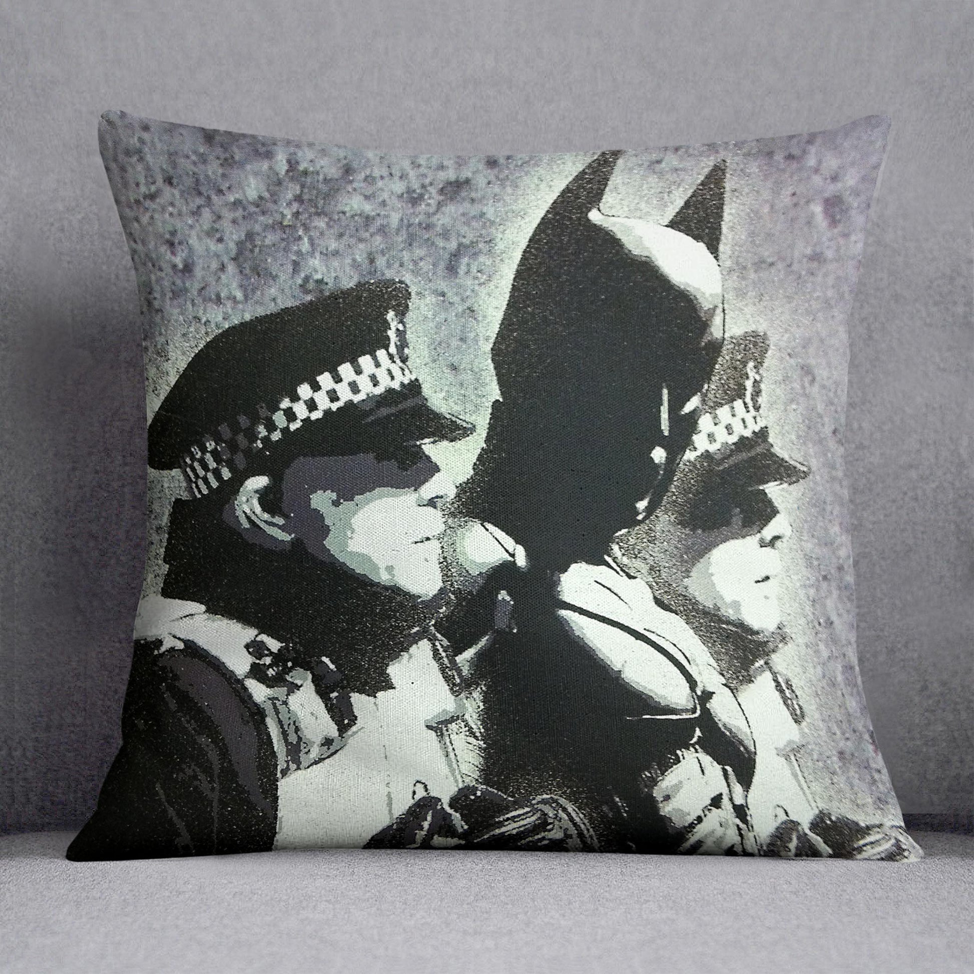 Banksy Security Guard With Pink Balloon Dog Cushion