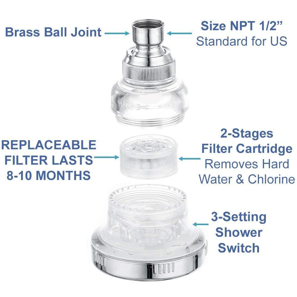 PureAction Water Softener Shower Head Filter for Hard Water Chlorine