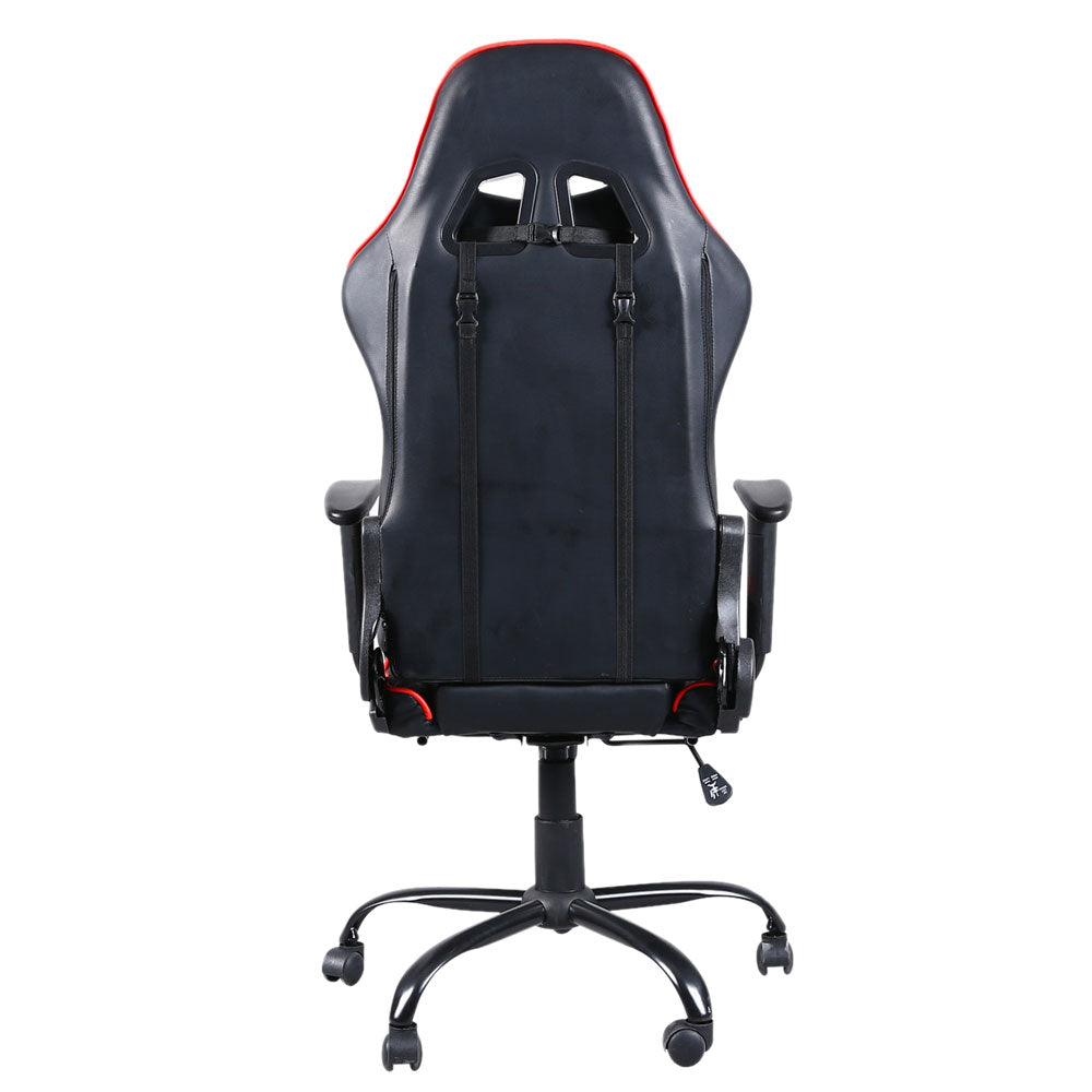 Specifications: 1. Material: five-star Foot Made of Steel, Sponge and Metal 2. Color: Black & Red 3. Seat Dimensions: (52 x 53) cm (L x B) 4. Dimensions of The Backrest: (55 x 84.5) cm (L x B) 5. Head Cushion Dimensions: (28 x 16) cm (L x B) 6. Pillow Dimensions: (33 x 18) cm (L x B) 7. Dimensions of Feet Resting: (34 x 20) cm (L x B) 8. Five-star Foot Diameter: 68 cm 9. Adjustable Height: (128.5-136.5) cm 10. Weight: 19 kg